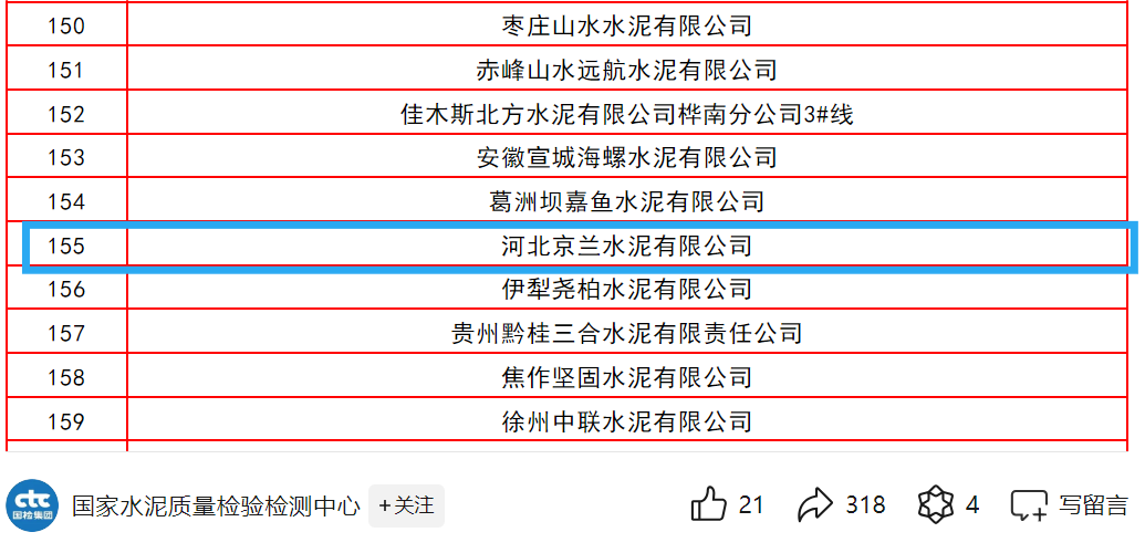 8月2日,備受矚目的“天寶華瑞杯”全國(guó)第十九次水泥化學(xué)分析大對(duì)比獲獎(jiǎng)名單正式揭曉,在這場(chǎng)全國(guó)性的水泥行業(yè)質(zhì)量競(jìng)技中,京蘭5家水泥公司均榮列榜單。