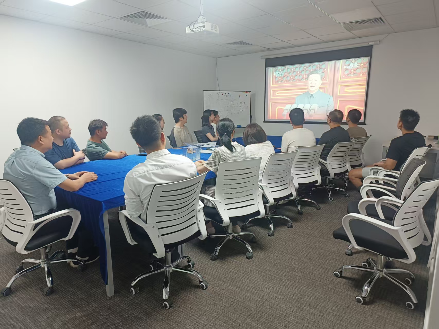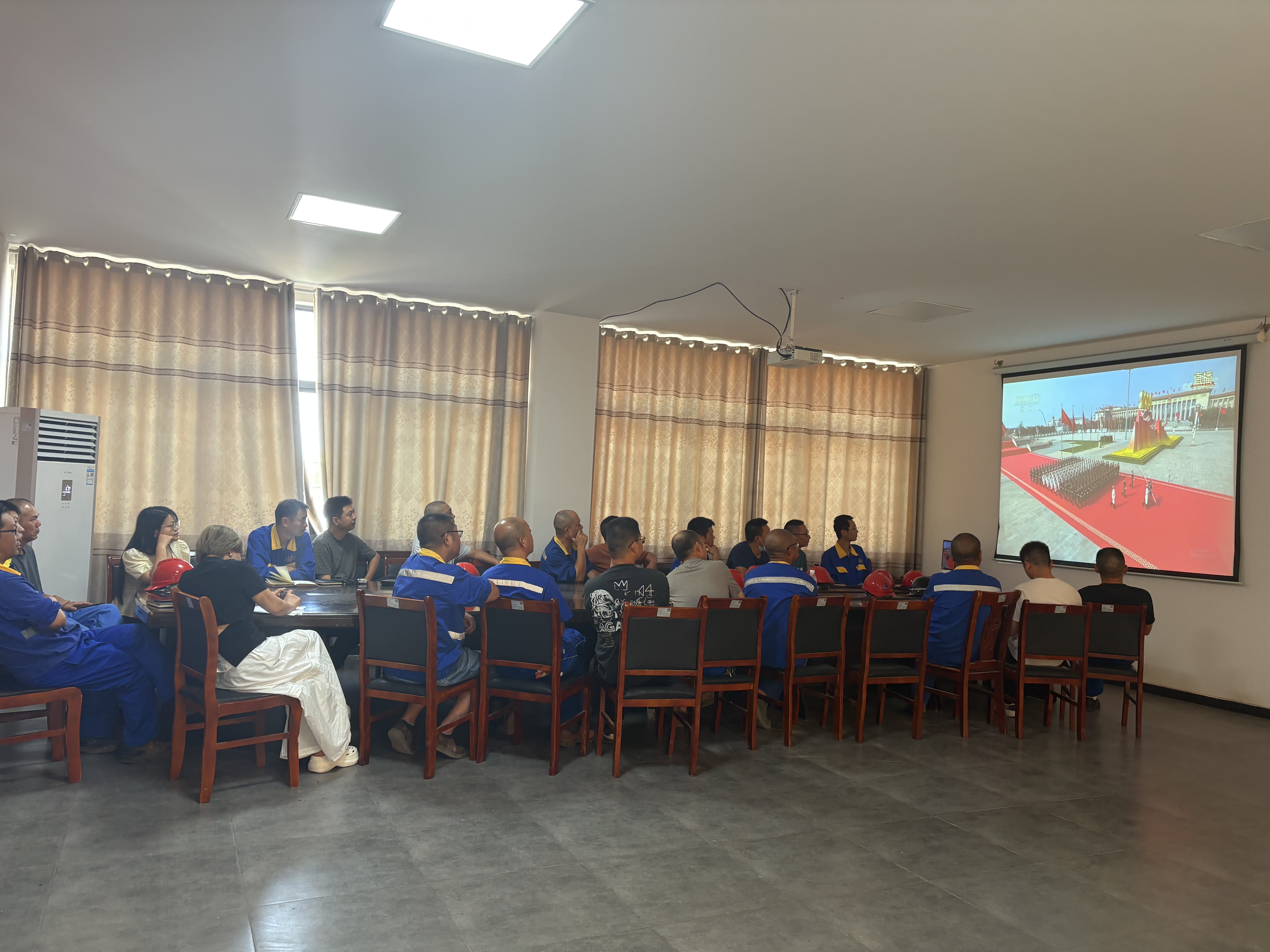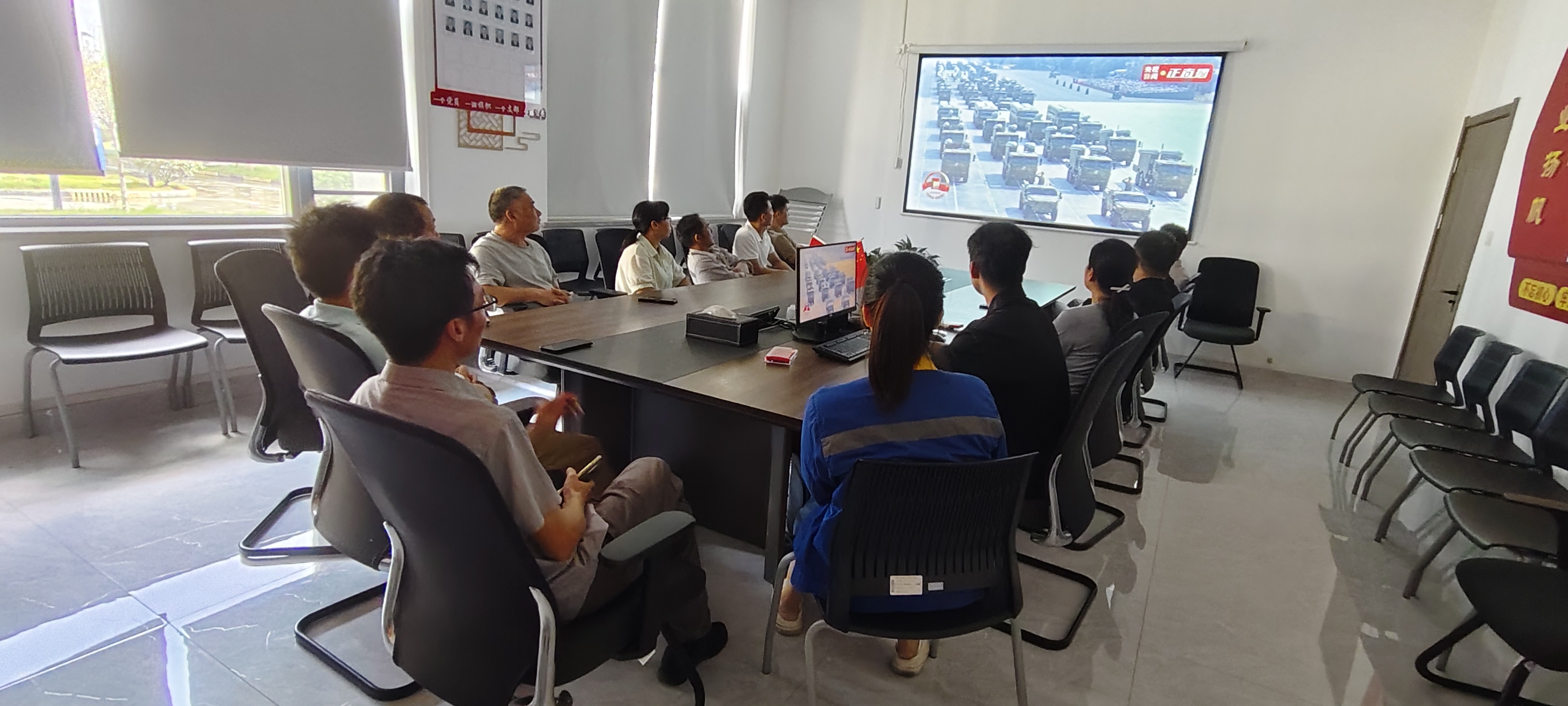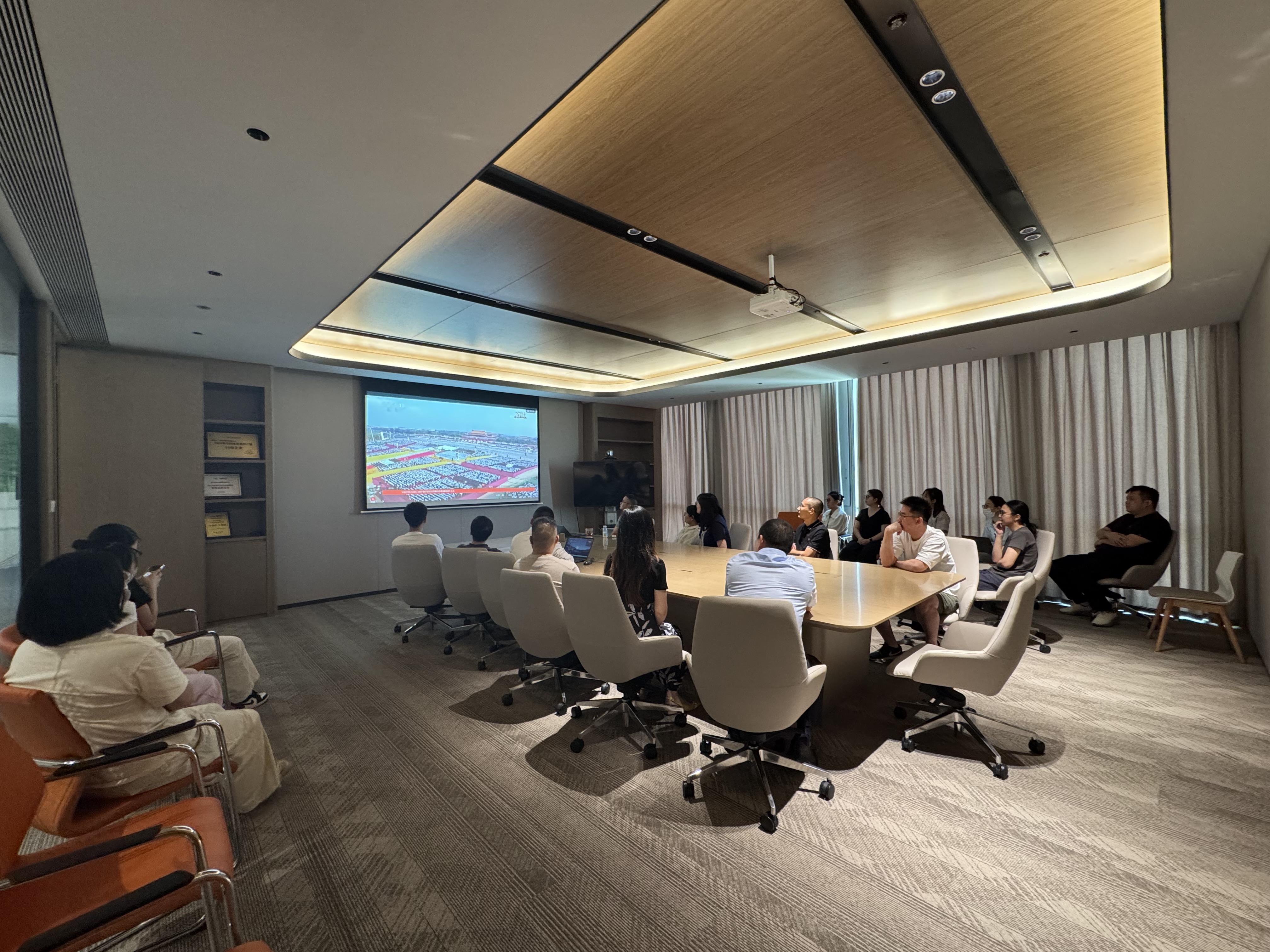 上午9時(shí),大家準(zhǔn)時(shí)聚集在各公司的會(huì)議室,自發(fā)整理好衣襟,眼神中滿(mǎn)是期待與肅穆。當(dāng)直播畫(huà)面切到天安門(mén)廣場(chǎng),鮮艷的五星紅旗在晨光中冉冉升起,激昂的歌聲里,是跨越代際的信仰傳承,是屬于京蘭人的集體共鳴。?